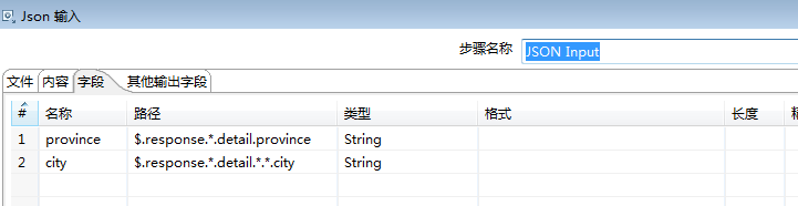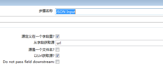 JSON输入设置,可以直接调用URL,也可以使用HTTP组件(后者可能效率高一点,未测试),这里直接使用JSON Input自带的URL请求
